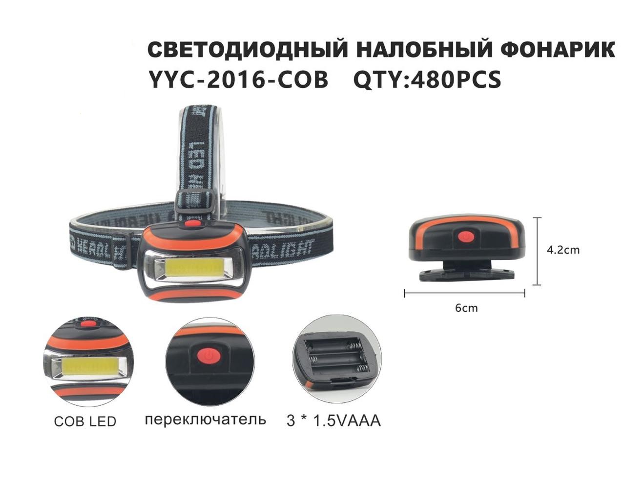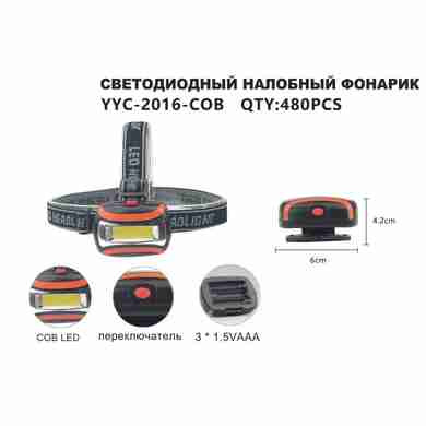Фонарик на лобный на батарейках COB 2016 (Арт. RS1021)