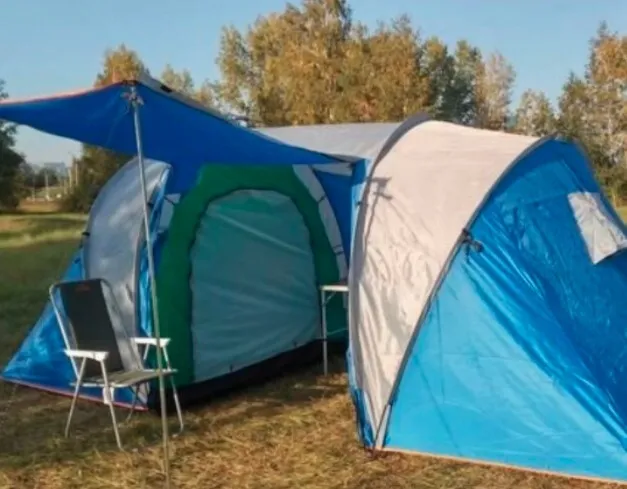 Просторная двухкомнатная палатка кемпингового типа для семейного отдыха, рассчитана на длительные стоянки со всеми удобствами, предназначена для комфортного размещения 4-х человек. Идеально подходит для проживания 2-х семей. Тамбур закрывается от дождя. В коридоре можно поставить небольшой столик. Палатка двухслойная, состоит из внешнего тента и внутренних палаток. Плотный не продуваемый материал. Удобный и надежный механизм сборки/разборки.