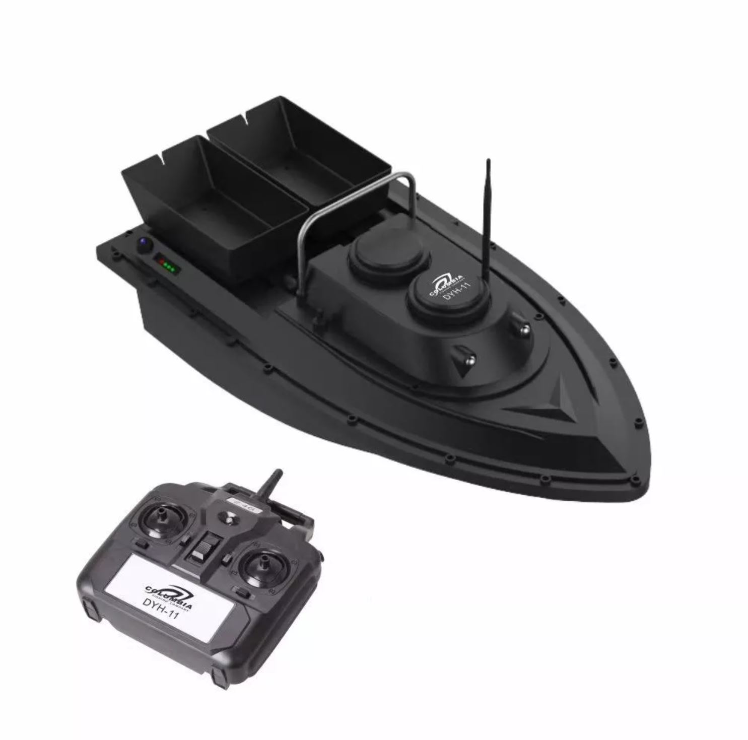 Прикормочный кораблик Columbia DYH-11 - имеет перезаряжаемый аккумулятор ёмкостью 5200mAh. Дистанционный диапазон работы пульта 250-300м. Беспроводное управление позволяет выпустить приманку далеко в озере, реке и водохранилище. Так же кораблик оснащен большим контейнером для приманок или наживки. Обтекаемый корпус выполненый из ABS уменьшает водонепроницаемость и повышает устойчивость к волнам. Пульт и аккумулятор входят в комплектацию.