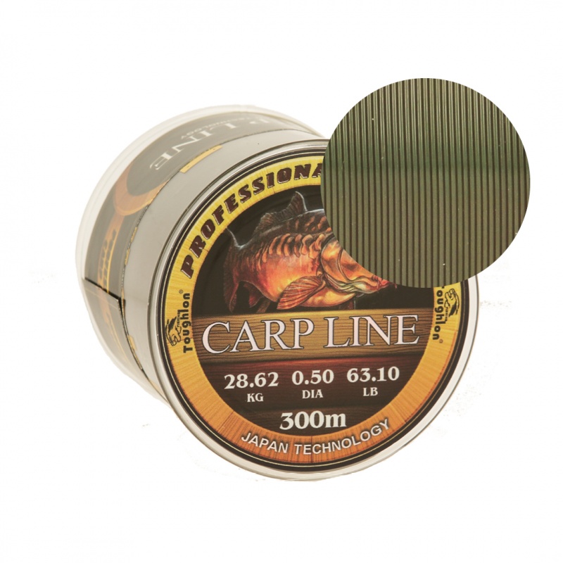 Toughlon Carp Line 300M - специальная леска для карпфишеров любителей и профессионалов. Toughlon Carp Line - это леска разработана специально для ловли карпов разного размера. Имеет хорошее соотношение диаметра и разрывной нагрузки, удобную размотку 300 метров, одного диаметра на всём протяжении, хорошо держит узлы.