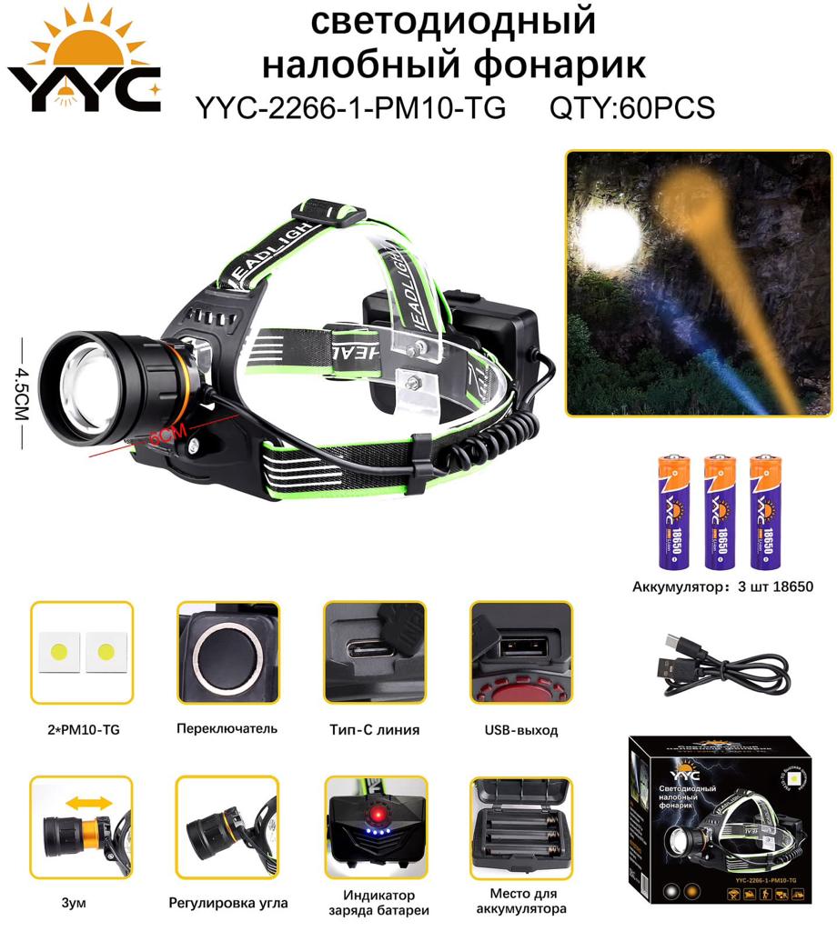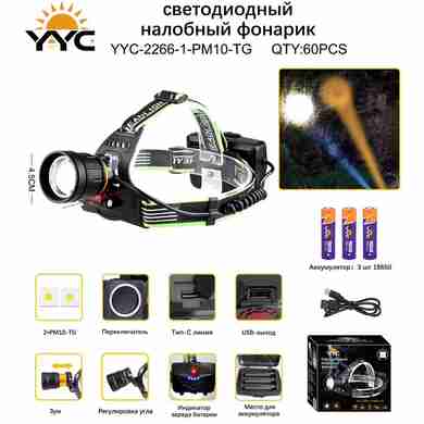 Светодиодный налобный фонарь на аккумуляторах для рыбалки охоты туризма (Арт-YYC-2266-1-PM10-GT) — отзывы