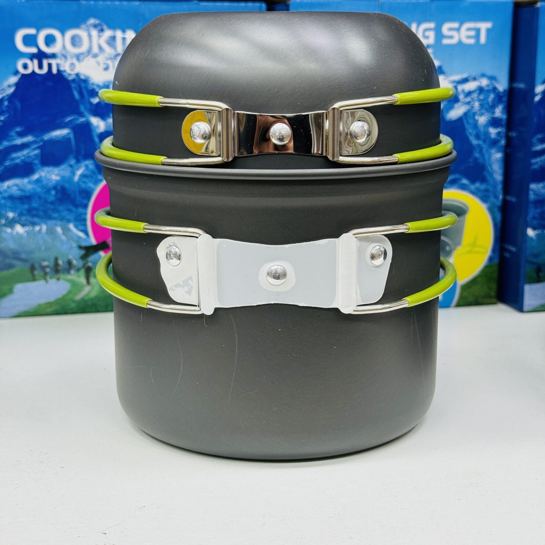 Вся посуда изготовлена из прочных и легких материалов, что делает её удобной для транспортировки и использования на природе. Кроме того, набор компактно складывается, что экономит место в походном рюкзаке.