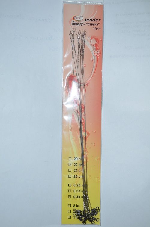Поводки Струна с вертлюжком LEADER ДОЮЙ 22см-0,40mm до 17кг 10 штук.