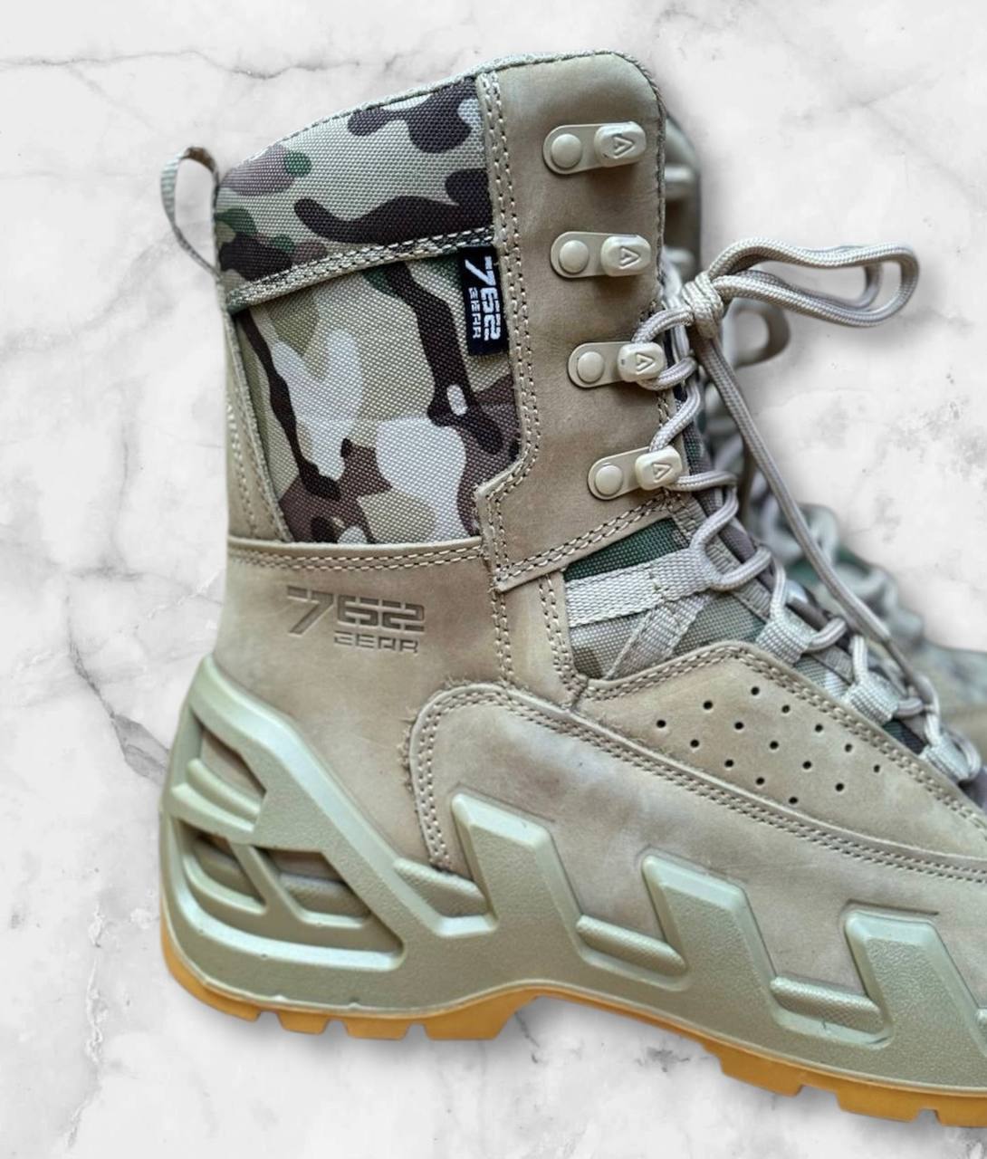 Усиленные носок и пятка защищают от ударов и травм, а эргономичная конструкция обеспечивает комфортную посадку и снижает усталость ног даже при длительном ношении. Ботинки 7.62 – это сочетание передовых технологий и проверенных временем материалов, созданное для вашей безопасности и комфорта.