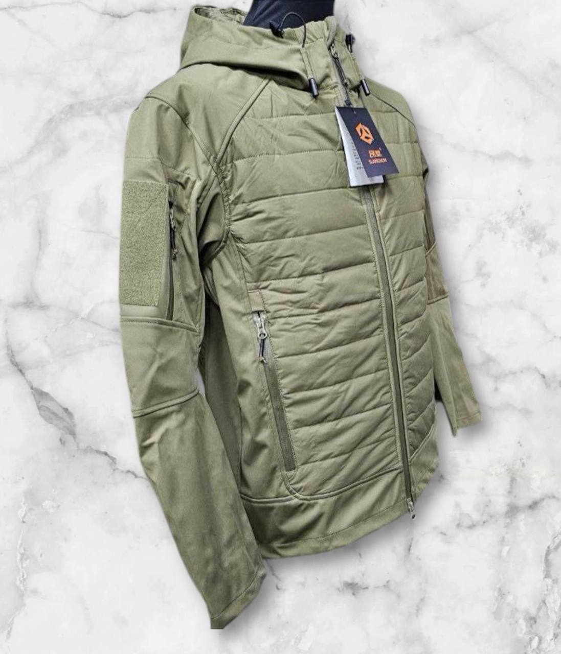 Это лёгкая и удобная куртка. Она представлена в двух цветах: оливковом и мультикам.