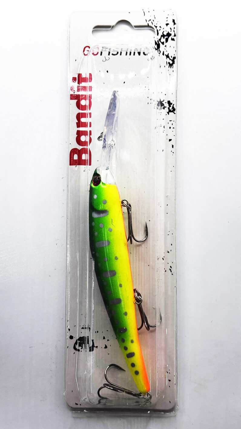 BANDIT CO FISHING 122мм, 22гр – это универсальный воблер, который можно использовать для ловли различных видов хищной рыбы, таких как щука, судак, крупный окунь и сом. Рекомендуется для ловли троллингом и классическим спиннингом, особенно эффективен при облове глубоких ям, бровок и других мест, где предпочитает держаться крупная рыба.
