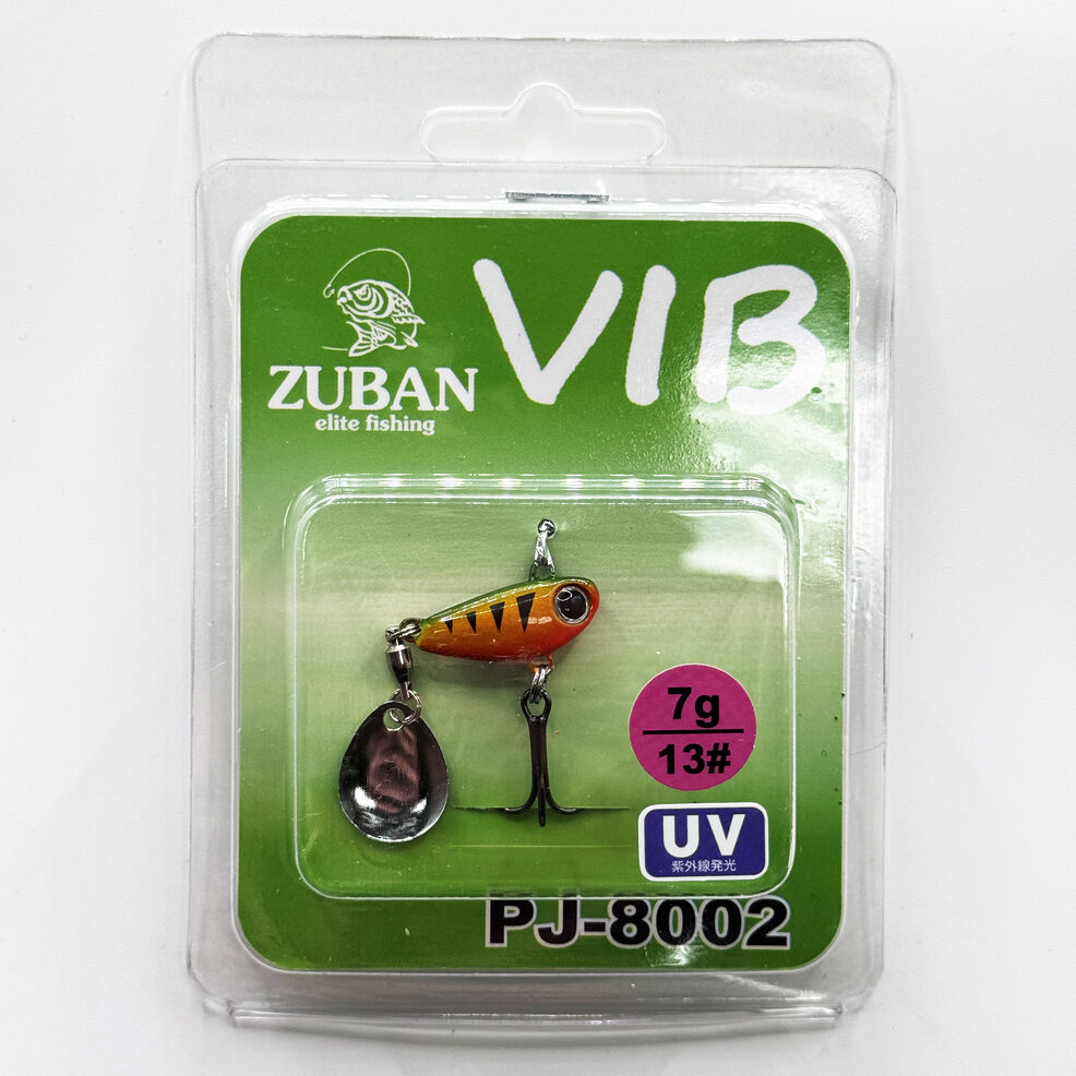 Блесна VIB PJ-8002 тейл спиннер – это приманка, сочетающая в себе вибрацию тела и вращение лепестка, создавая привлекательный эффект для хищной рыбы. Конструкция включает в себя массивное тело, обычно изготовленное из металла, и вращающийся лепесток, расположенный в хвостовой части.
