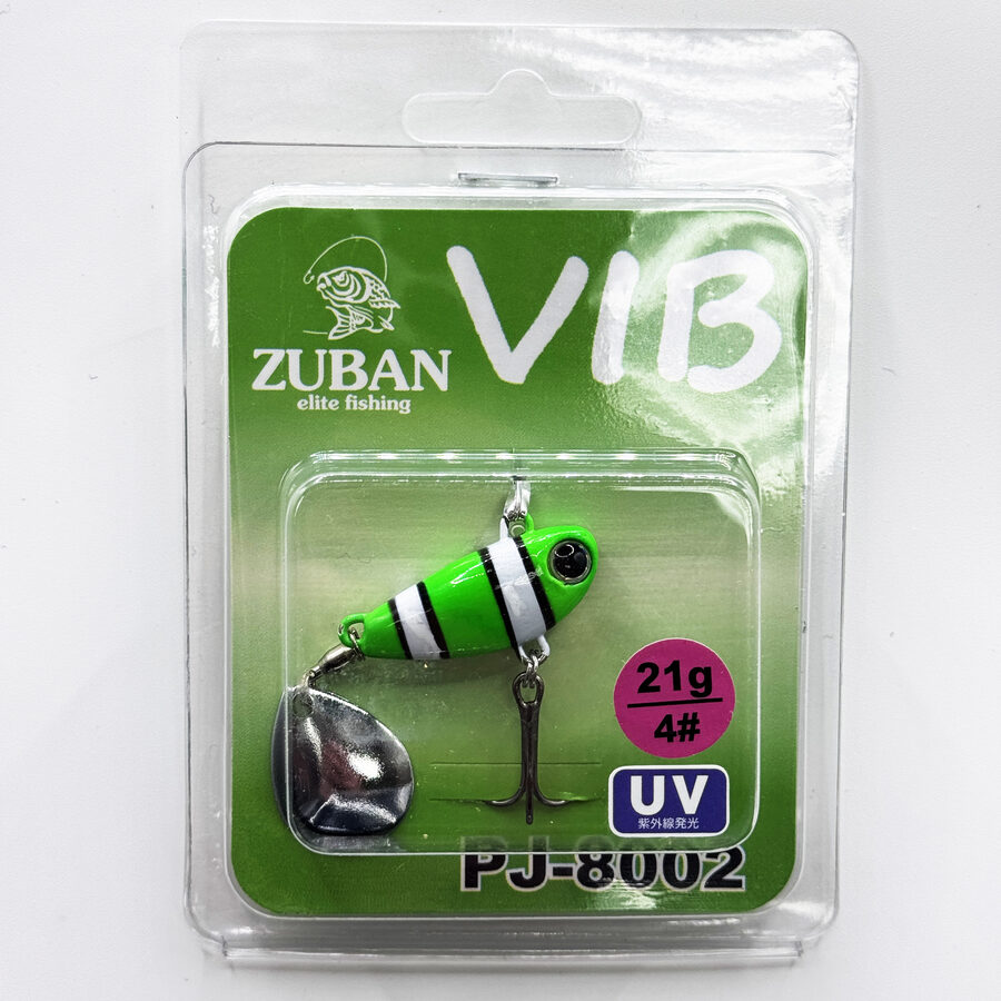 Блесна VIB PJ-8002 тейл спиннер – это приманка, сочетающая в себе вибрацию тела и вращение лепестка, создавая привлекательный эффект для хищной рыбы. Конструкция включает в себя массивное тело, обычно изготовленное из металла, и вращающийся лепесток, расположенный в хвостовой части.