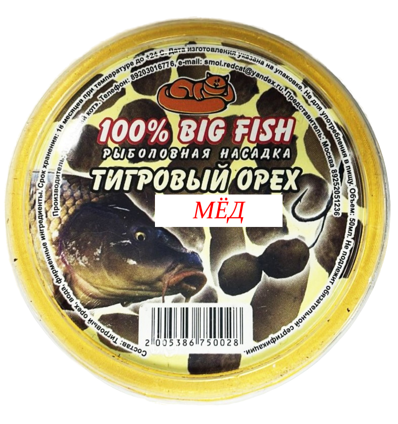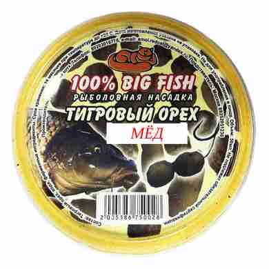 BIG FISH вкус ТИГРОВЫЙ ОРЕХ Мёд – это ваш надежный помощник в достижении больших уловов. Попробуйте и убедитесь сами в эффективности этой уникальной насадки!