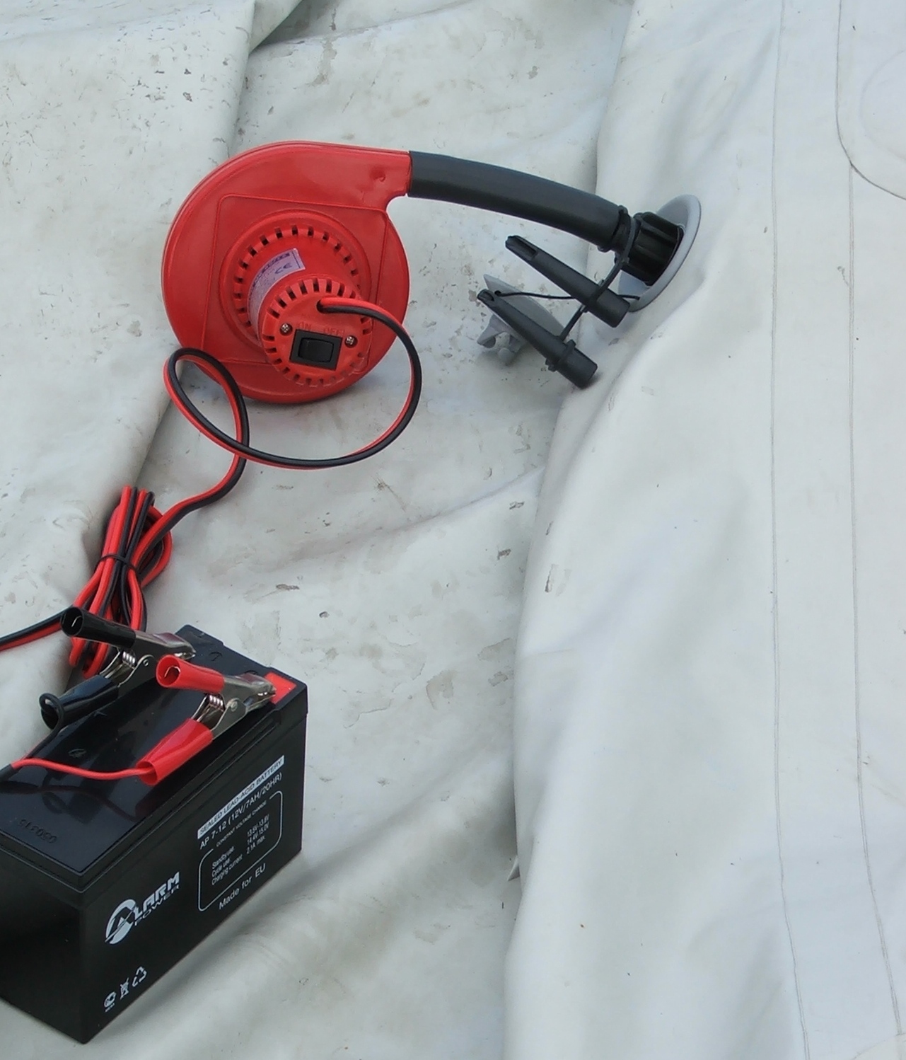 Насос электрический для матрасов, надувных пляжных аттракционов. Компактная модель центробежного насоса Bravo может использоваться и для создания начального объёма баллонов надувных лодок. Питание от источника тока напряжением 12V с помощью зажимов «крокодил» на клеммы. Производительность 700 л/мин. Максимальное давление 80 мбар. Автоматическое выключение – нет. Режим скачивания - Да Вес 0,7 кг. Размеры: 16,5 х 24 х 13 см. Комплектация: - инструкция на русском языке, - набор переходников для основных видов воздушных клапанов. - короткий шланг для присоединения к клапану, - специальный штуцер для откачивания воздуха из баллона.