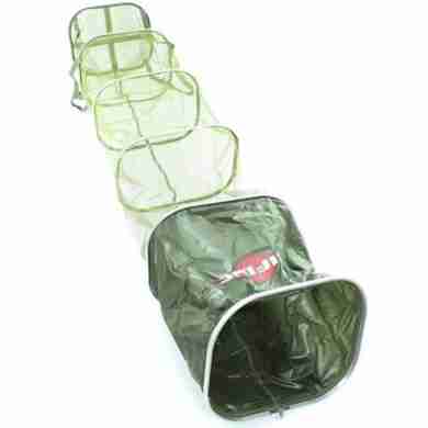 Высококлассный садок Mifine KX прямоугольной формы с защитой сетки от истирания. Регулируемый угол входа. Быстро сохнущая сетка, не впитывающая запаха рыбы.