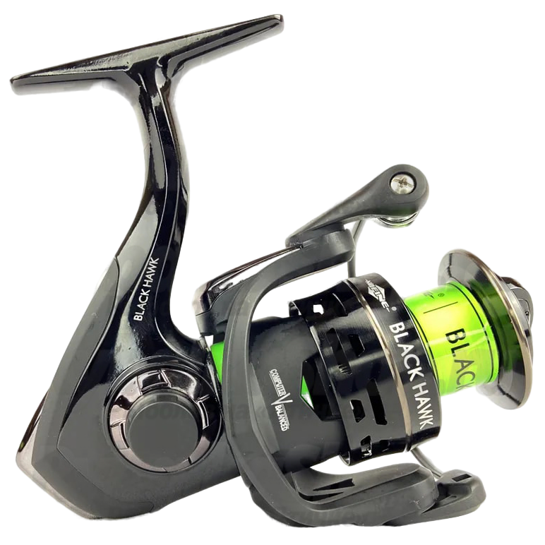 Спиннинговые катушки Mifine Black Hawk с передаточным числом 5,1:1 обладают карбоновым корпусом, который снижает вес изделия. Серия Black Hawk включает в себя модели классов light, medium и heavy. Плавный фрикционный тормоз с передним расположением настраивается точно под условия ловли. В механизме – восемь подшипников (7+1). Рукоять выполнена из алюминия, оснащена прорезиненным кнобом. Основная шпуля выполнена так же из алюминия, в комплекте есть и запасная – графитовая. При необходимости смены оснащения на водоеме шпуля с леской или шнуром другого диаметра будет уже готова. В основе Black Hawk – простой и надежный планетарный механизм.