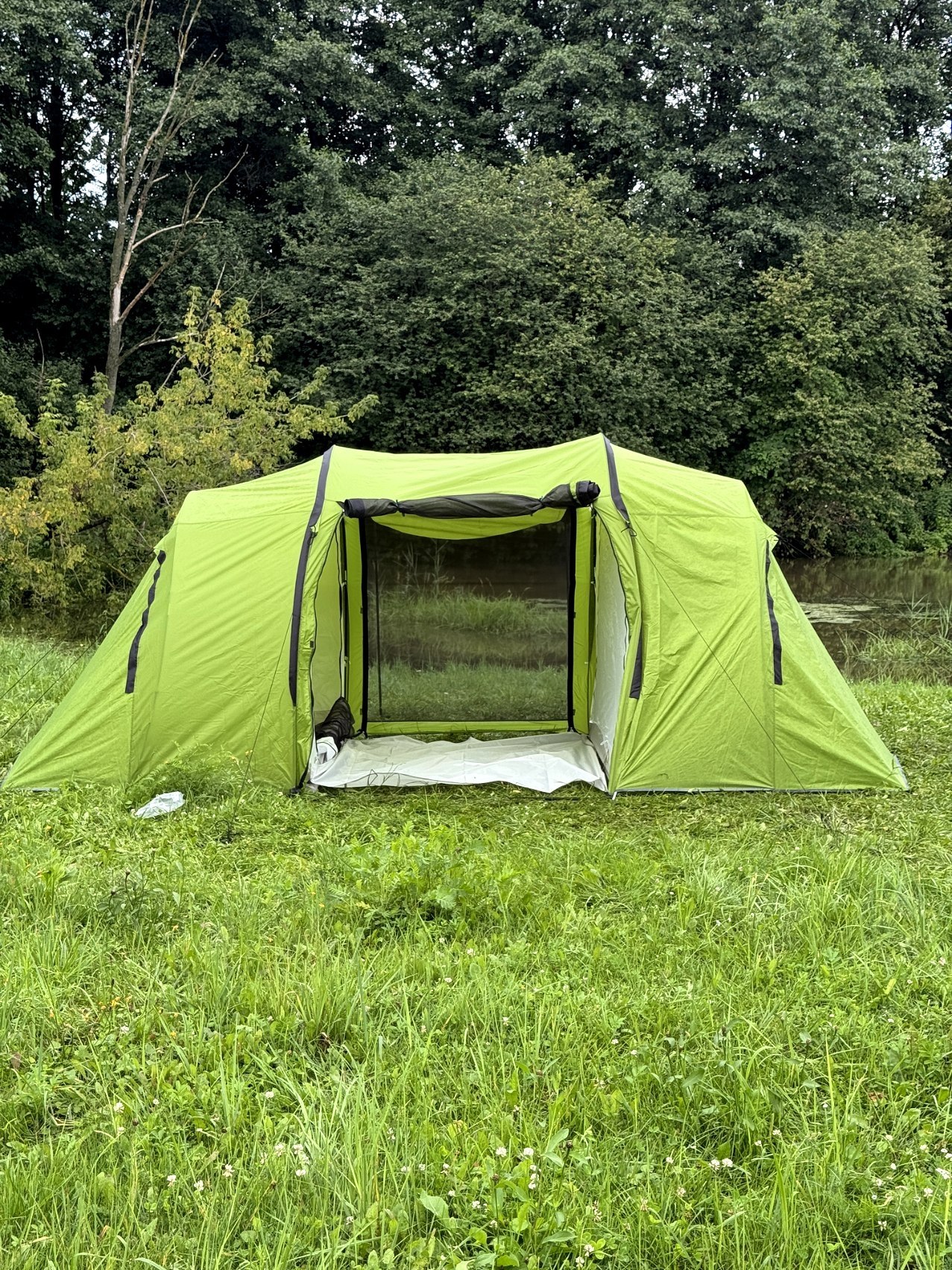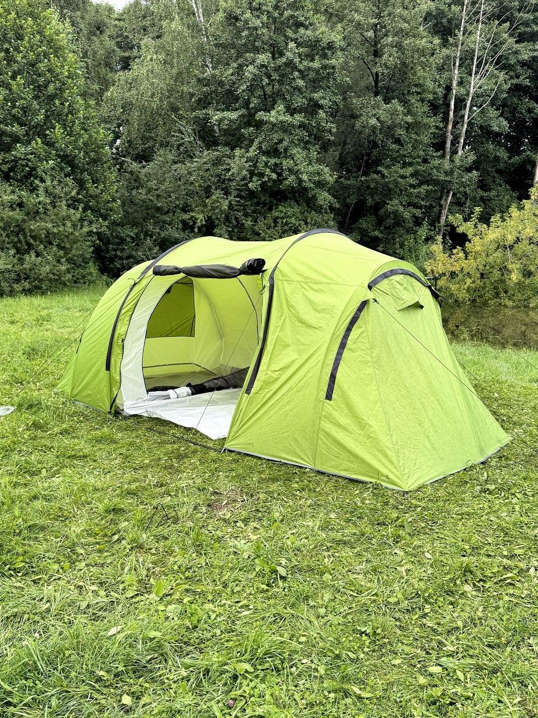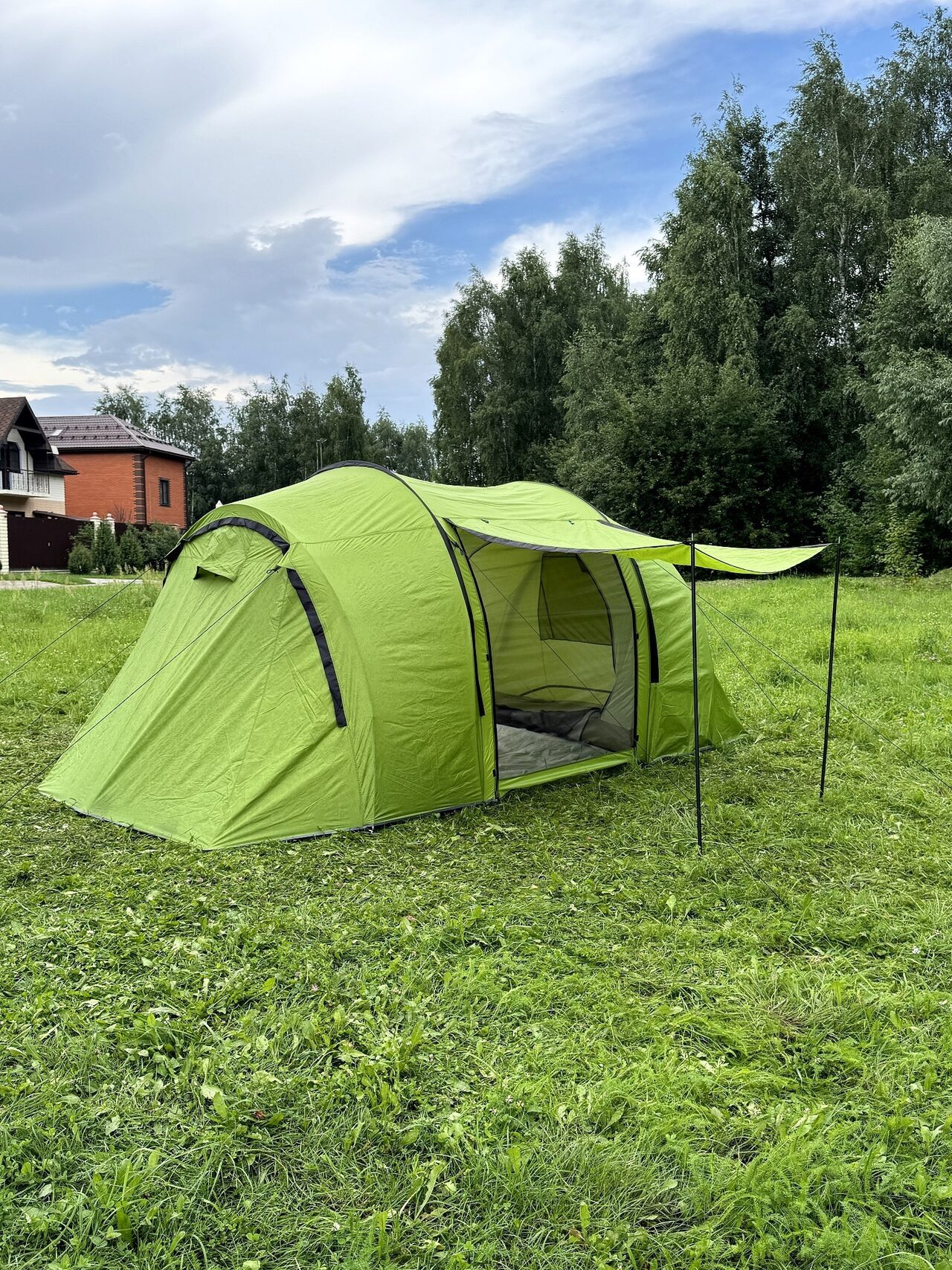 Палатка на 6 человек, размер (150+150+150)х220х185см, вес палатки 6.5кг. 190T полиэстер PU3000MM, 180Т воздухопроницаемая полиэфирная сетка, влагостойкая пропитка.