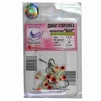 Джиг-головка крашеная Шар на крючках KUMHO 2,5g крючок №2 10 штук. (Арт. RS45755)