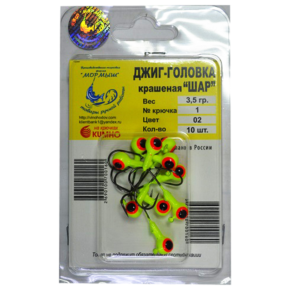 Джиг-головка крашеная Шар на крючках KUMHO 3,5g крючок №1 10 штук. (Арт. RS45760) — отзывы