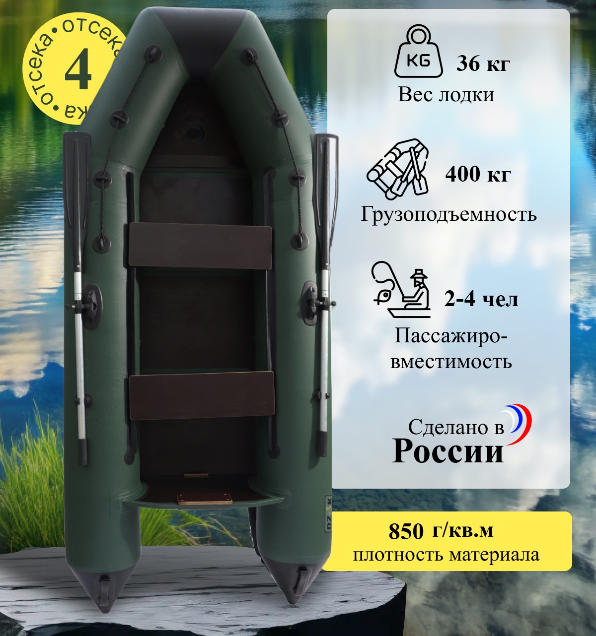 В стандартную комплектацию входят весла, насос, ремонтный комплект и сумка для транспортировки. Дополнительно, предусмотрена возможность установки различных аксессуаров, таких как надувное дно или кресла, для повышения комфорта пользователей. Лодка DZUK 320 МК представляет собой оптимальное решение для рыбалки, охоты и активного отдыха на воде, сочетая в себе функциональность, надежность и безопасность.