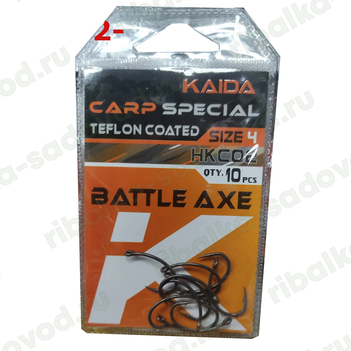 Крючок Kaida BATTLE AXE, одинарный, карповый, в упаковке 10 штук (Размеры внутри) — отзывы