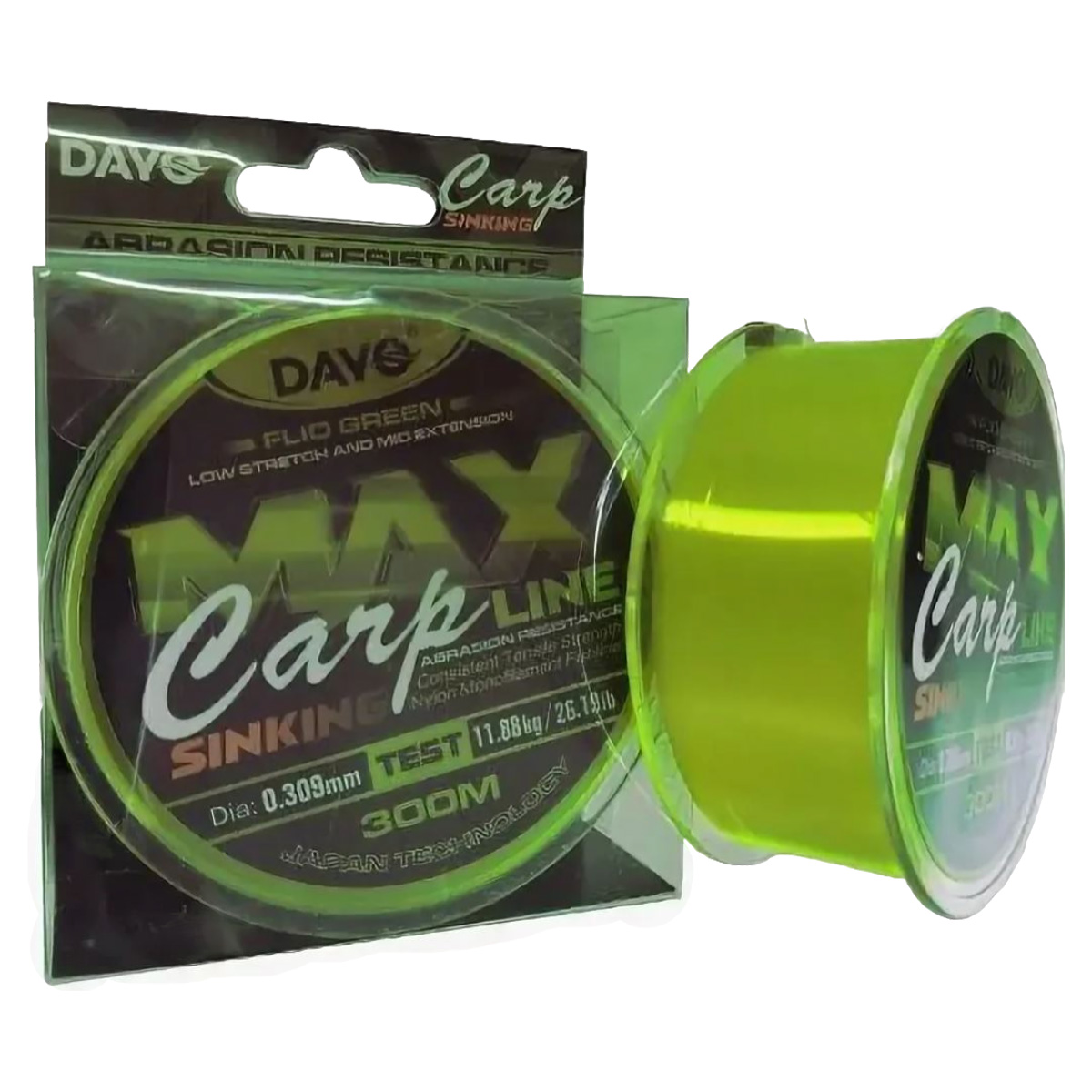 Леска DAYO MAX CARP, зелёная, 300м (Mин. заказ 10шт/уп.) (Размеры внутри)