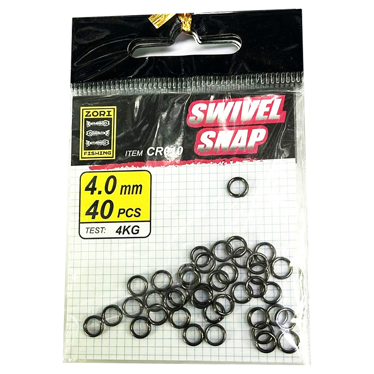 Кольцо заводное SWIVEL SNAP 4.0мм, тест 4кг, 40шт/уп. (Мин заказ 10 пачек) (Арт-83)