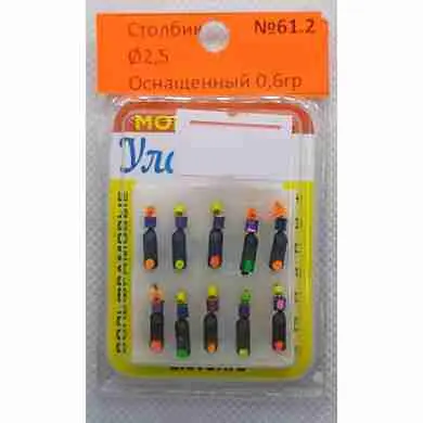 Мормышка Улов, столбик диаметр 2.5мм, оснащенная 0.6гр, упаковка 10 штук, №61.2 (Арт-99)