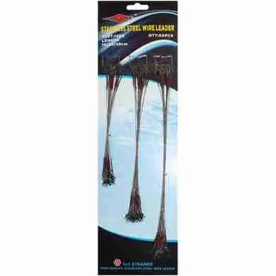 Высококачественные поводки из нержавеющей стали Mifine 57001-1. Семь стальных нитей заключены в нейлоновую оболочку. Благодаря нейлоновой оболочке поводок становится очень эластичным. Поводки устойчивы к внешним повреждениям и имеют минимальное растяжение. Вертлюжки и застежки изготовлены из коррозийно-устойчивой стали.