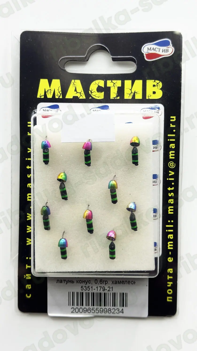 Мормышка МАСТИВ вольфрам, латунь конус 0.6гр, хамелион, мин заказ 10шт/уп. (Арт-LN.5351-179-21)