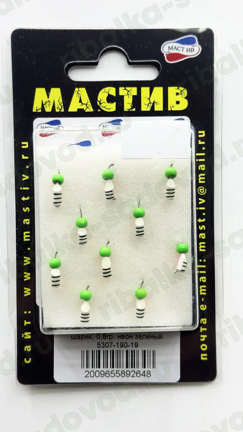 Мормышка МАСТИВ вольфрам, шарик неон 0.8гр, зелёный, мин заказ 10шт/уп. (Арт-LN.5307-190-19)