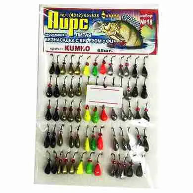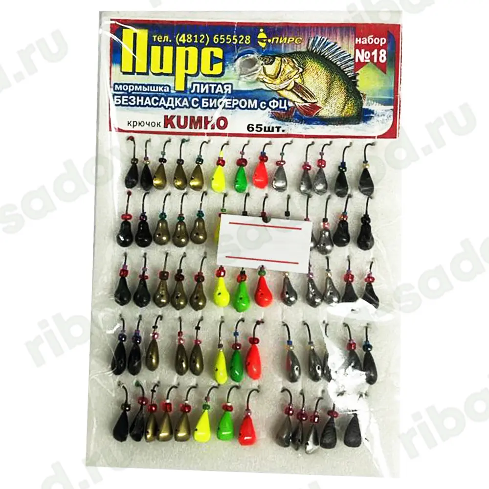Мормышка ПИРС №18, литая, безнасадочная с бисером, крючок kumho, упаковка 65шт. (Арт-M126/12) — отзывы