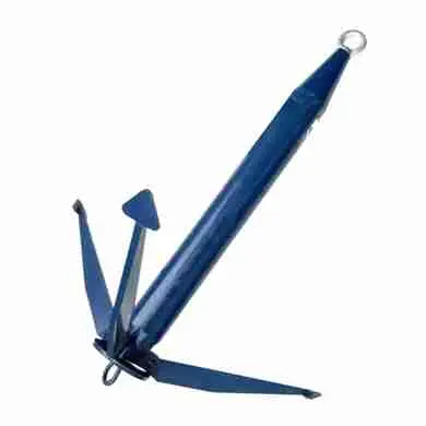 Якорь металлический для лодки— одна из наиболее распространенных моделей, предпочитаема владельцами маломерных суден. На больших она рассматривается как вспомогательная. Легко складывается и убирается в сумку. Нижнее кольцо позволяет закрепить верёвку намертво к кольцу снизу, а к верхнему кольцу прикрепить верёвку на нейлоновый хомут, таким образом при зацепе якоря, при резком рывке верёвки нейлоновый хомут отрывается и якорь высвобождается в противоход за нижнее кольцо.